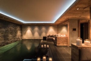 Nestled in the heart of Gstaad, one of the most prestigious Alpine villages in the Swiss Alps, Chalet Blanc is a luxurious retreat that perfectly blends modern sophistication with rustic charm. The chalet spans four levels and offers 550 m² of elegant living space, featuring seven en-suite bedrooms that can comfortably accommodate up to 14 guests. Guests can unwind in the spa area with a serene indoor pool, cascading waterfall, and state-of-the-art sound and lighting systems. The main living area, adorned with designer furnishings, a grand fireplace, and stunning mountain views, provides the perfect setting for a cozy family gathering or an elegant soirée.