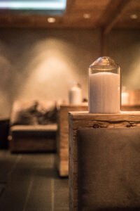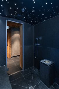 Indoor spa with a cascading waterfall