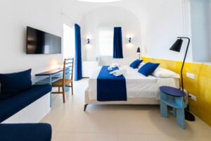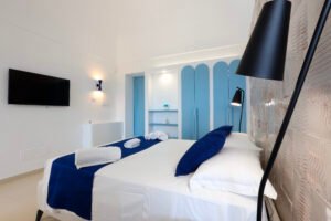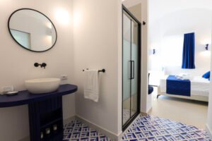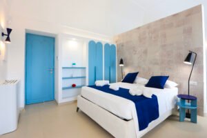 Dimora Anacapri, nestled at the serene base of Monte Solaro on the island of Capri, offers a unique accommodation where history, modern luxury, and the tranquil beauty of Anacapri converge. The property can host up to 12 guests with six modern suites with minibar, flat-screen TV, and private bathroom. The property also has an infinity pool, WiFi, free private parking, solarium with sunbeds, umbrellas, a relaxing wellness tub, a mini outdoor gym and a splendid Mediterranean garden where guests can relax.