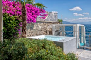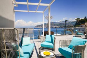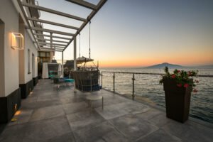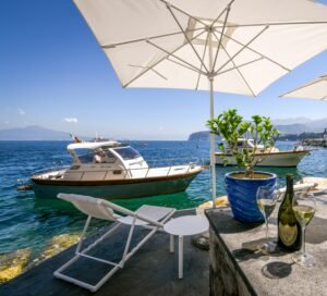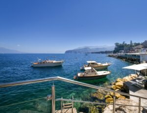 This independent seafront Villa with access to the sea nestled among some of the most beautiful bays in Sorrento, is immersed between a luxurious garden that encircles the villa and the crystal clear water. The ground floor property features four bedrooms and five bathrooms, a modern Kitchen and Living Room area. Each bedroom has been designed to offer guests sublime comfort and exceptional quality with first class bed linen, Sat Tv, Usb Plugs, A/c, fitted wardrobes. The exteriors offer an elegant terrace, equipped with sunbeds, umbrellas, tables, armchairs and rocking chairs, with a breathtaking view over the whole Gulf of Naples and Vesuvius, but also a private panoramic garden with lawn and private parking.