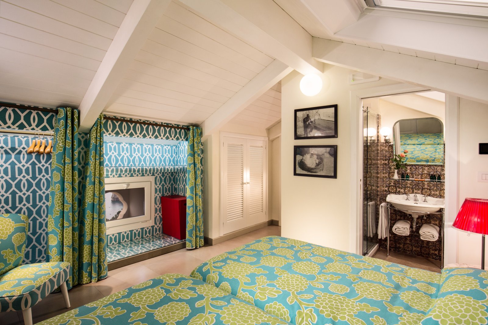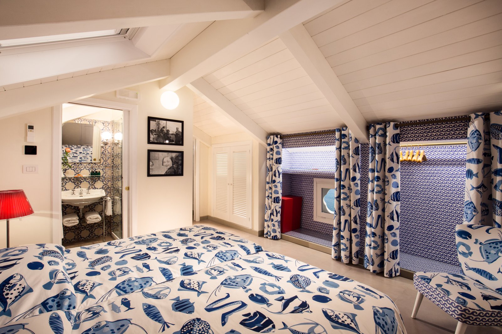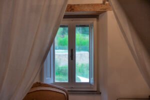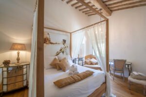 On the first and second floors there is a work area with sofa, TV, PC and printed and I the turret a fantastic bedroom with: