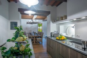 From the ground floor the property extends to the lower floors via internal stairs where you will find a dining room with twelve seats, a fully equipped open space kitchen and a 5 burner induction hob and double oven, microwave oven, wine cellar, large fridge with ice maker, toaster, dishwasher and coffee machine.