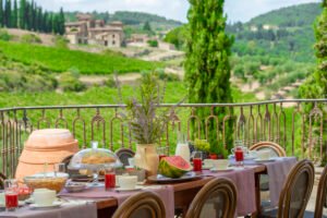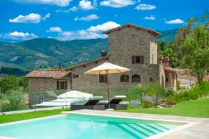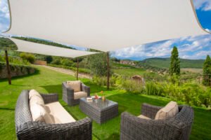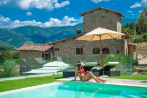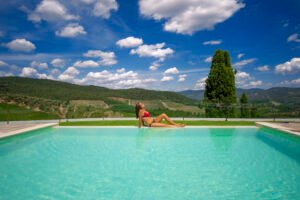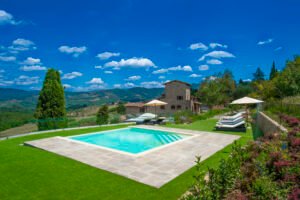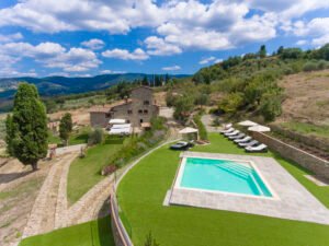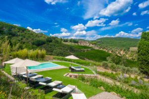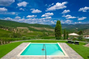 Located in the Chianti region, in the heart of Tuscany, Villa Royal Vineyard is a Villa with a beautiful swimming pool, its unique charm will give you an unforgettable travel experience. Located between the hills surrounding Florence and Siena, this estate is immersed in the splendid Tuscan countryside and has 7 double bedrooms and as many bathrooms, private Mediterranean garden, two private swimming pools for guests, one of which is infinity with a solarium, and open-air kitchen complete with barbecue and table and chairs for outdoor dining. The ideal solution for those wanting to immerse themselves in the Tuscan nature and enjoy the charm of the Chianti hills. Our villa offers an exclusive stay for families or groups of up to 14 guests.