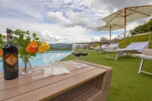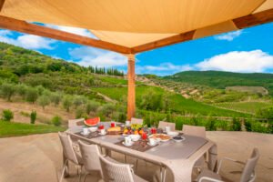 Surrounded by Tuscan vineyards and olive groves, in one of the most fascinating countrysides in Italy, Villa Collina is a holiday villa with swimming pool and spa surrounded by Tuscan nature and equipped with all the comforts for a fairytale stay. Located in a private valley which is part of the entire property, a few minutes from the village of Panzano, Villa Collina has 4 bedrooms with air conditioning/heating and 5 bathrooms, terraces and gardens overlooking the hills, outdoor swimming pool and heated indoor pool, barbecue area and table and chairs for outdoor dining.